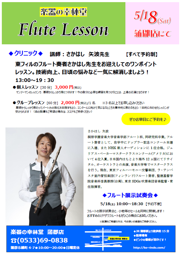 東フィルのフルート奏者さかはし先生をお迎えしての