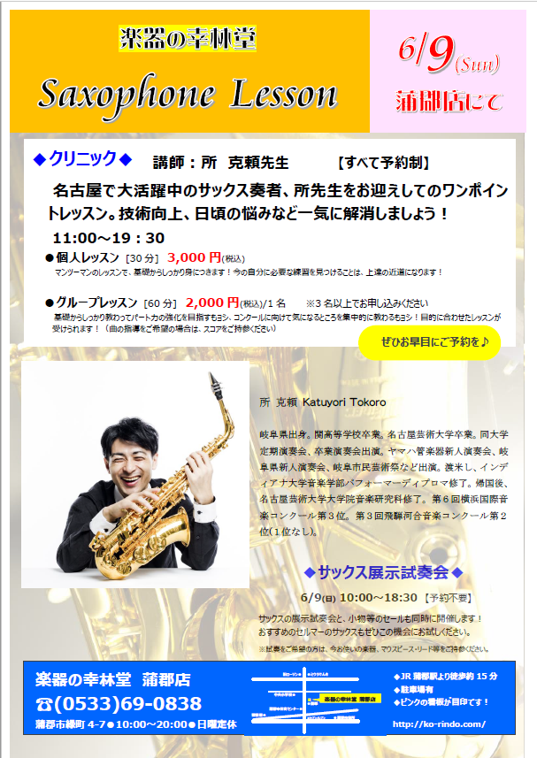 ☆サックスフェア&レッスン☆【6/9㈰】