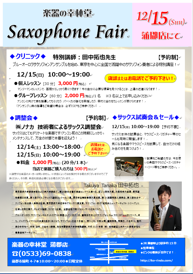 ★サックスフェア★【12/15(日)】